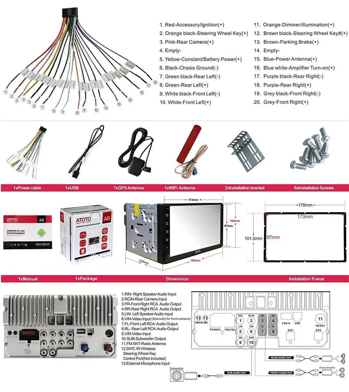 ATOTO A6 Pro A6Y2721PRB Double DIN Android Car Navigation Stereo - Dual Bluetooth waptX - Fast Phone ChargeUltra Preamplifier - in Dash Entertainment Multimedia RadioWiFiSupport 256G SD More ATOTO S8 Gen2 Standard S8G2A74SD 7inch Double-DIN Andriod Car in-Dash NavigationUSB TetheringDual BluetoothHD Rearview with LRVPhone Link Android. Camera is new I am just throwing. Motorcycles Directly from China SuppliersATOTO A6 Double din Android Car GPS Navigation Stereo Player2 x BluetoothA6Y2710S 1G16G Multimedia Radio Enjoy Free Shipping Worldwide.