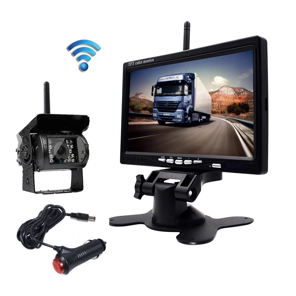 Podofo Wireless Truck Vehicle Car Rear View Backup Camera 7. Wireless Car Backup Camera and Monitor Kit Waterproof Night Vision Wireless Rear View Camera 7 Inch HD LCD Monitor Parking System Car Charger for 12V-24V Truck RV Trailer Camper Bus 37 out of 5 stars 172.