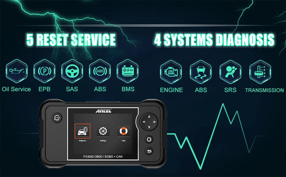 The Ancel FX2000 supports all 10 modes of the OBD II specification. Engine ABS SRS Transmission EPB SAS BMS Oil Service Scan Tool. ANCEL FX3000 Automotive OBD2 Scanner Vehicle Check Engine Transmission SRS ABS Code Reader Car EPB Oil Service Light SAS ABS BMS Reset Diagnostic Scan Tool in Code Readers.